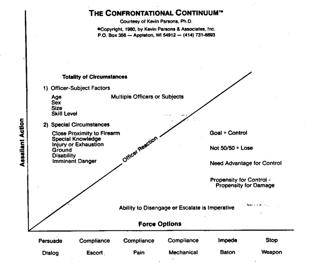 Once I started digging, though, I found out that not only have many departments and agencies abandoned the use of continuums altogether, but that heated discourse surrounding the influence they have on officer training and criminal/civil prosecution has been going on for well over 30 years.