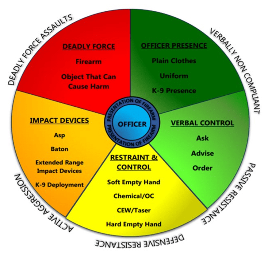 This has culminated in what is today known as the use of force continuum: a graphic created to help train officers in their understanding of the progressively more extreme options available to them to control a resisting suspect and effect an arrest.